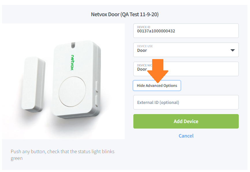 External ID can be assigned to hardware assets during the Add Device / Add Gateway process. To add an ID, expand the Hide Advanced Options and enter the id (any alphanumeric combo) into the External ID field.