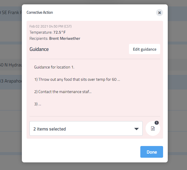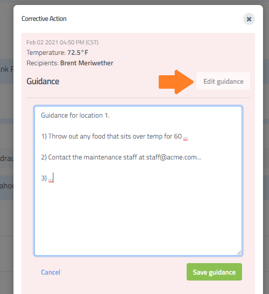 Some companies may have specific guidance or procedures that must be followed when certain events occur. You can use the Guidance text found in Corrective Actions to help guide users through key points that they should take when performing actions in response to alerts.