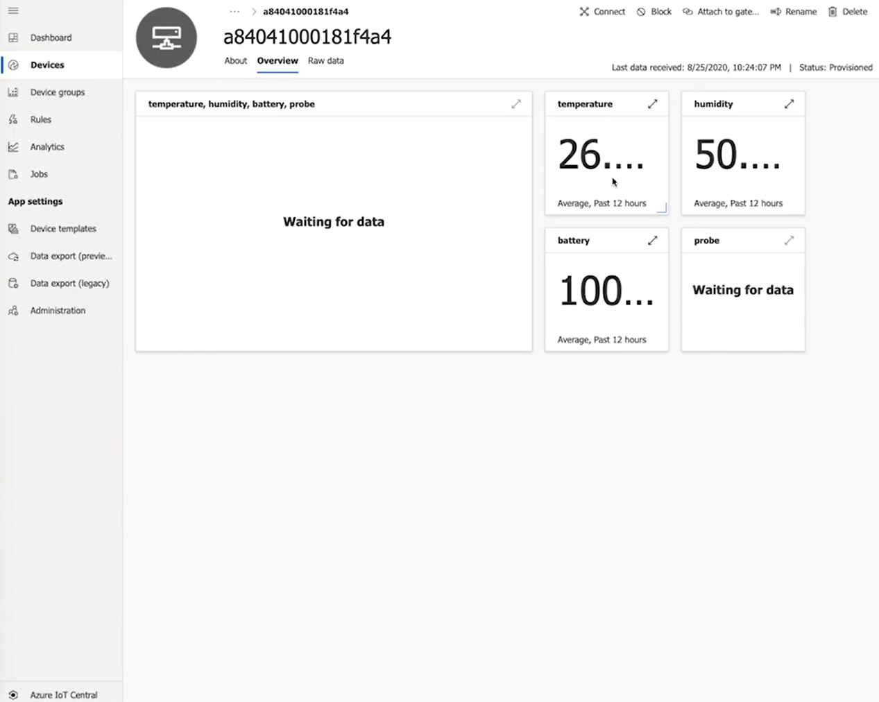 You can verify the integration is working by opening your Azure IoT Central and viewing the metrics.