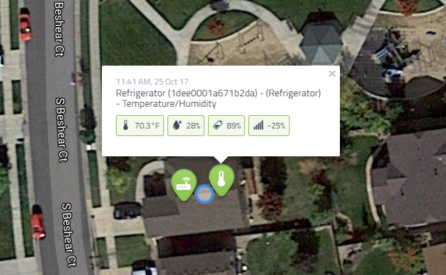 After adding devices to your sensor map, you will see their pin icons displayed on screen. You can drag and drop these pins to their correct location on the sensor map. This allows you to place the device exactly where it is located. In addition, you can click on the pin to view its current status.