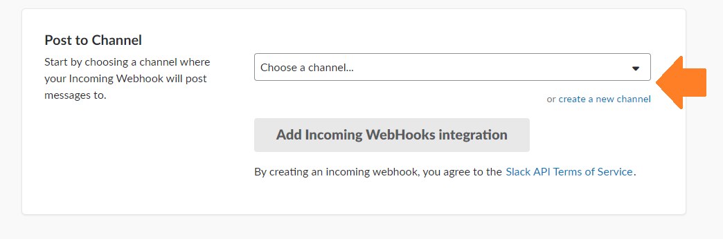 Select the Slack Channel you want the data to be posted and click on Add Incoming WebHooks integration.