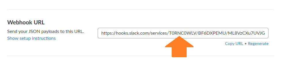 After adding your Webhook integration in slack, a settings page appears. Scroll down to the Webhook URL section and copy this URL.