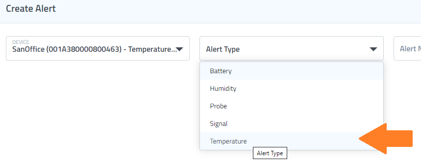 Select Temperature or Humidity for the Alert Type. (You may also be able to select “Probe” if your sensor has a probe attached).