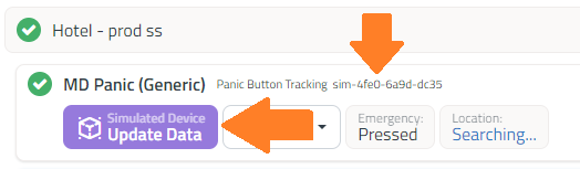 Once added to your dashboard, the Simulated device will have an id that begins with a sim- prefix and will have an Update Data button in the app that can be used to trigger a new data point for the device.