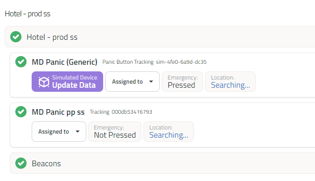 Once added to your dashboard account, simulated devices are treated the same as physical devices. You can set up alerts, review their settings, view their history, etc. You can also mix and match real and simulated devices into custom dashboard, reports, etc. Simulated device data will pass via Integrations OK. The only difference is that the simulated device will only send data points when you use the Update Data button in the app – they do not operate on an interval.