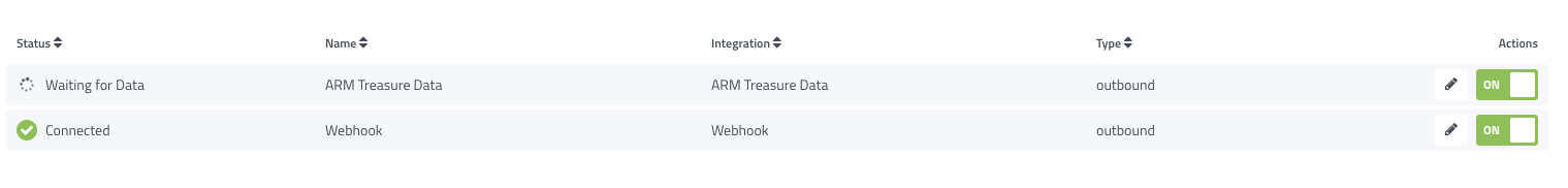 Located on this screen is a list of each of the existing integrations that exists in your account. To modify or remove an existing integration, click on the edit/pencil icon. You can also temporarily disable the integration by toggling it Off.