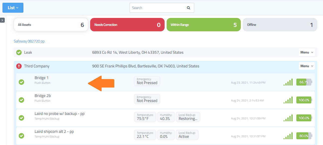 Select the sensor or gateway from the Manage screen.