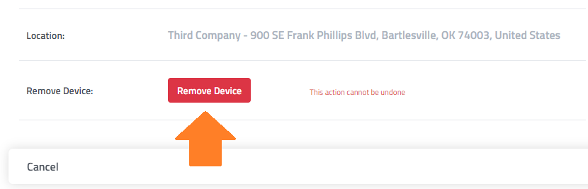 From settings, select the Remove Device button and confirm the device removal.