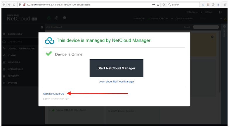 You’ll get a screen that looks like the following. Click on Start NetCloud OS link such as highlighted: