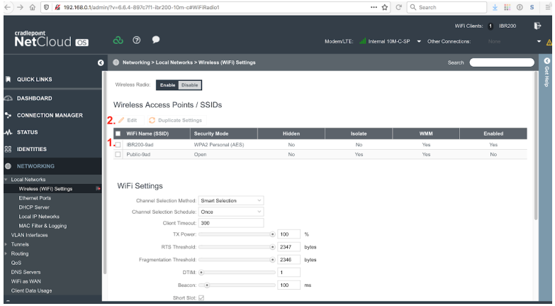 This does not impact the connectivity of LoRa sensors and gateways with the Cradlepoint unit. You only need this article if you’ve noticed your Cradlepoint unit is broadcasting a WiFi AP and you’d like to disable it.
