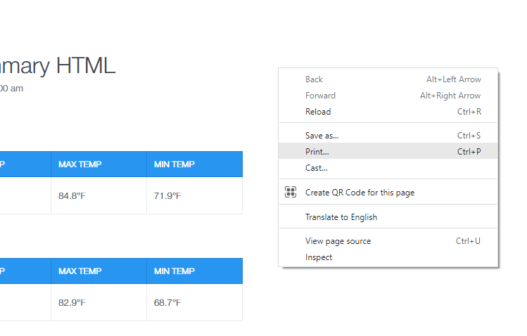 To save the nicely colored background graphics found in the HTML report, be sure to select Headers & Footers and Background graphics option in print settings. You should only have to do this once.