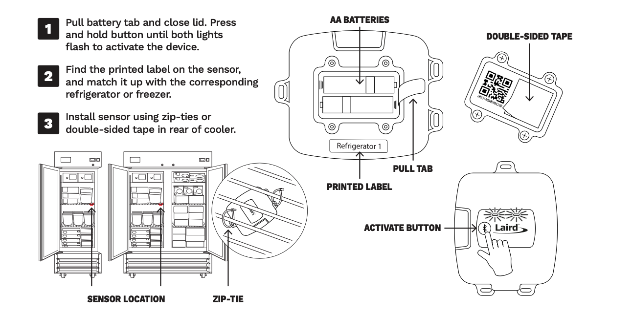 Insert the batteries into the sensor. Press and hold the button until both lights flash.