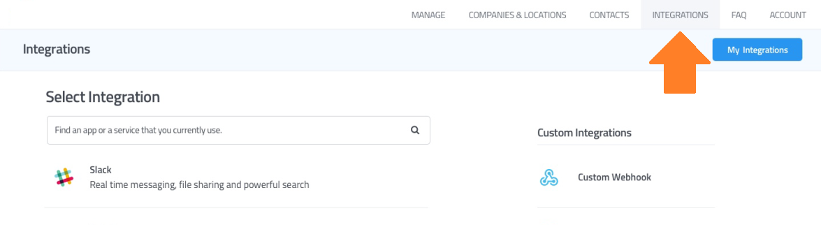 Select the Integrations option from the main top nav menu.