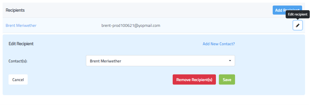 Find the recipient you want to edit and select the Edit Recipient icon.