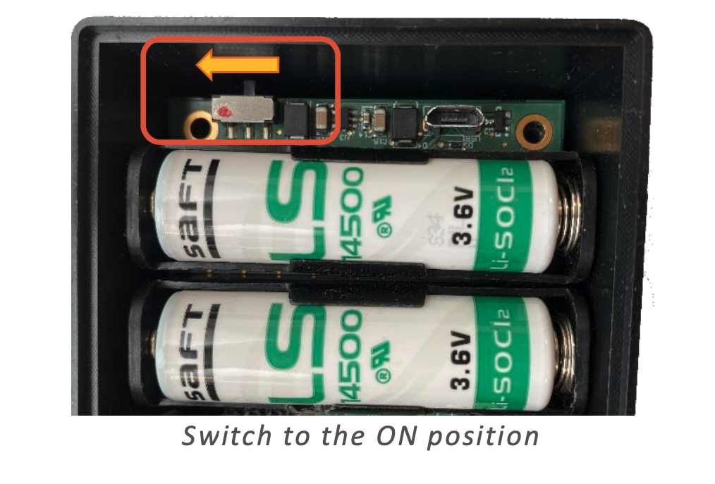 To power the device ON, remove the cover of the enLink Status by unscrewing the two screws on the cover. Locate the power switch and using small screwdriver gently slide the power switch towards the ON position as shown.