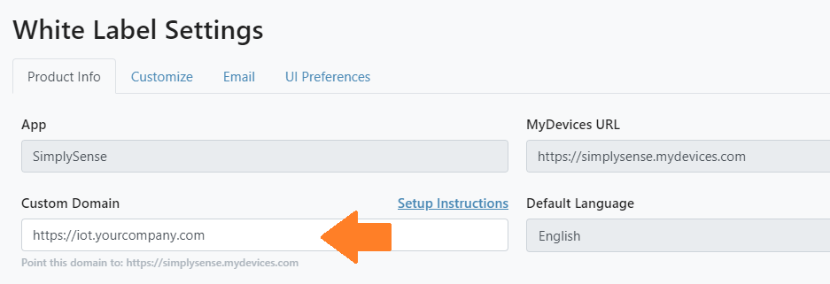 On the Product Info tab that appears, enter the custom domain you are using into the Custom Domain field.