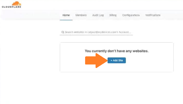 Enter the domain name that you are going to be managing from Cloudflare and select Add site.