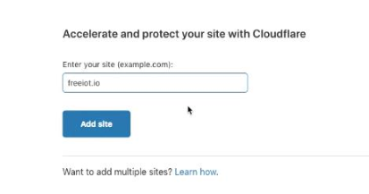 For this example we will be adding the domain freeiot.io in Cloudflare which we have set up already as domain within GoDaddy.